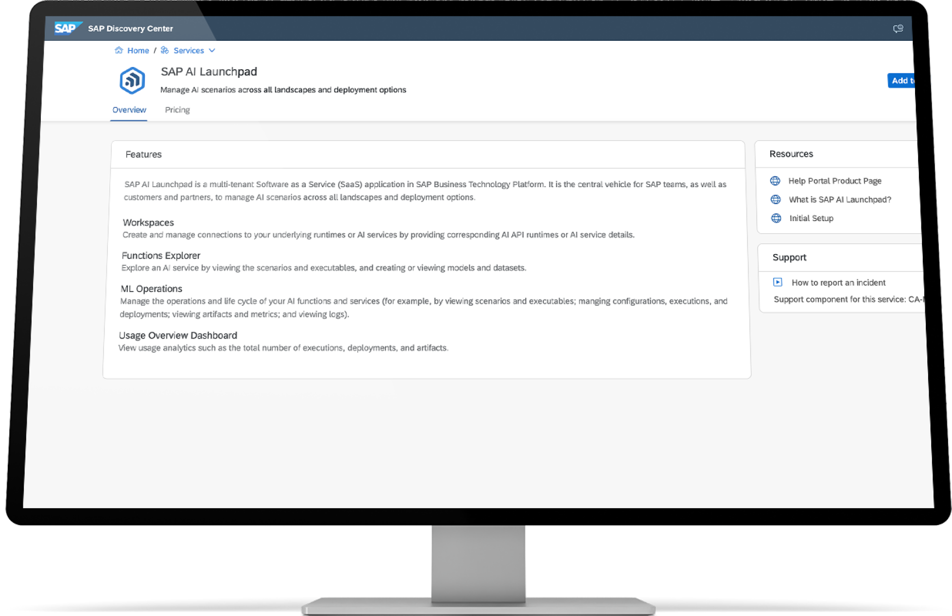 使用 SAP 治理的 AI API 来管理并运营不同架构和部署模式下的 AI 服务,从而确保以统一的方式使用 AI 服务。